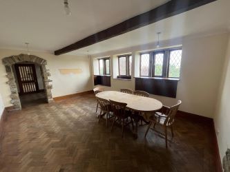 double glazed windows with stone mullions. Natural herringbone wood floor