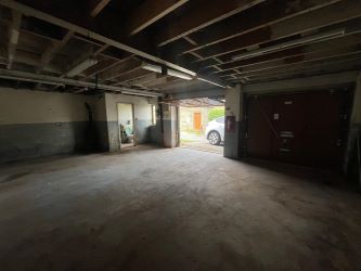 flush wc. There is a wood burning stove, independent twin garage doors, A