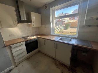 A living kitchen with the kitchen area being fitted with a range of base and wall