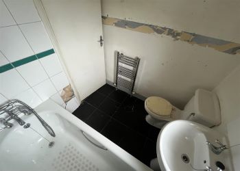 Fitted with a white three piece suite comprising low flush wc, pedestal hand wash basin and panel bath with