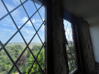 with stone mullions to the rear elevation taking in the views. The landing is of