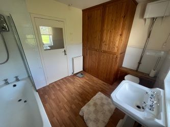 useful linen cupboard housing the boiler, decorative coving and a loft hatch