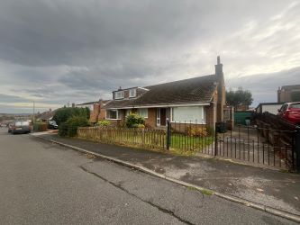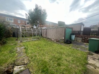 A well proportioned, lawn front garden with good distance from the public pathway. There is access to the front door and a